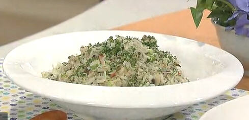 아스파라거스(4개), 게살(60g), 양송이버섯(4개), 다진 파(1/2컵), 밥(400g)