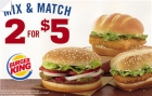 버거킹 2 for $5 (Mix & Match) 버거킹에서 샌드위치 2개에 $5 세일 (제한된 날짜)