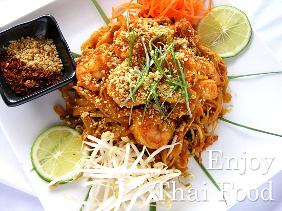 2) 팟 타이 Pad Thai : 태국식 볶음면. 국수에 새우, 달걀, 해물, 닭고기 등을 섞어서 요리하며 고춧가루, 땅콩가루, 설탕을 기호에 맞게 쳐서 먹는다. 달콤하고 살짝 매콤하여 한국인 입맛에 아주 잘 맞아 실패할 확률이 적은 음식이다.