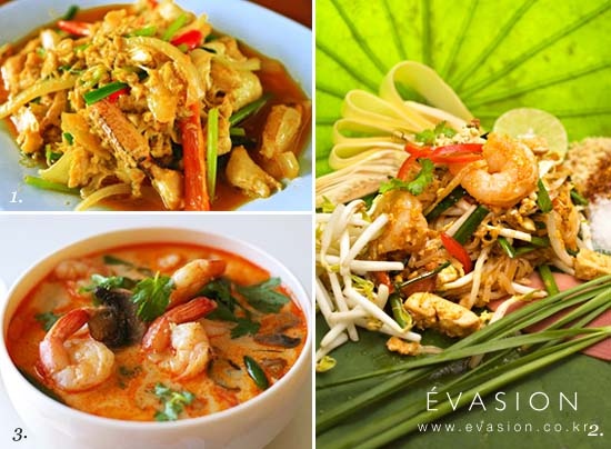 최근 한국에도 태국 레스토랑이 속속 생기고 있어 태국요리가 많이 친근해졌지만, 여전히 태국요리 전문점에 들어가 메뉴판을 보면 잠시 할 말을 잃게 된다. 어떤 양념과 재료를 쓰느냐에 따라 달라지는 태국 요리의 특성 때문에, 낯선 메뉴명이 많게는 40여 페이지도 넘게 써있기 때문이다. 메뉴판을 앞에 두고 뭘 골라야 할지 고민된다는 분들을 위하여, 에바종이 웬만해선 실패하지 않는 태국 요리 메뉴를 공유한다. 또한 태국 맛 여행에 빼놓을 수 없는 과일과 맥주까지 함께 소개한다.