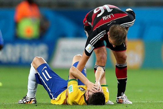 European Pressphoto Agency 브라질 월드컵 준결승전에서 브라질이 독일에 1-7로 대패한 후, 독일팀 주장인 필립 람이 브라질 축구 선수를 위로하고 있다. 독일이 브라질을 상대로 일방적인 승리를 거두자, 월드컵 개최국은 슬픔과 분노에 빠졌다. 축구를 빼고는 정체성을 논할 수 없는 브라질에 독일은 엄청난 굴욕감을 안겼다. 브라질 국민들은 홈그라운드에서 우승컵을 거머쥐기를 갈망했었다. 수많은 브라질 국민들은 도저히 믿지 못할 경기 결과에 눈물을 흘렸다. 소셜미디어에는 놀라움과 실망, 분노를 표현하는 글들이 넘쳤다. 브라질 일간지 ‘폴라 데 상파울루’ 웹사이트는 ‘역사에 길이 남을 굴욕’이라는 헤드라인이 올라갔다. 월드컵에 대한 국민들의 높은 기대를 반영하듯, 지우마 호세프 브라질 대통령은 공식 트위터에 7-1 참패에 대한 회한을 표현하는 글을 올렸다. 호세프 대통령은 올해 10월 대선에서 재선에 도전한다. “축구 선수들과 응원단을 생각하면 가슴이 아프다. 모든 브라질 국민들과 마찬가지로 패배에 깊은 슬픔을 느낀다.” 경기가 펼쳐지는 와중에 브라질 전역에서는 팬들이 분노와 실망을 표출하면서 크고 작은 사건이 잇따랐다. 독일의 골 퍼레이드가 이어지자, 브라질 벨루오리존치의 에스타디오 미네이랑 안과 브라질 전역에는 실의와 좌절을 표현하는 브라질 국민들의 모습이 눈에 띄었다. 에스타디오 미네이랑은 월드컵 경기가 열리는 경기장 10여 곳 가운데 하나다. 경기장 건설비에 투입된 거액의 예산으로 인해 지난해 브라질에서는 월드컵 반대 시위가 벌어졌었다. 브라질 동북부 헤시피 야외에서 독일전을 관람하던 관중들은 전반전에만 독일이 5-0으로 리드하자 폭동을 일으켰다. 경찰은 최루탄으로 상황을 진압했다. 경기장에서 독일전을 직접 관람한 베두 카르딤(25세, 변호사)는 이렇게 말했다. “불안하긴 했지만 그래도 이길 것이라고 믿었다. 이 정도로 박살이 날 줄 몰랐다. 환멸을 느낀다.” Agence France-Presse/Getty Images 실의에 빠진 브라질 축구 팬들: 슬라이드쇼 보기 북적거리는 상파울루 술집에서 경기를 관람하던 마누엘라 스카프(21세, 화장품 영업)는 독일이 첫 두 골을 터뜨릴 때는 조용히 있었다. 하지만 세 번째 골이 나오자 격분했다. “한 골을 더 먹어? 또?” 그녀는 TV에 대고 외쳤다. 다섯 번째 실점이 나오자, 그녀는 넌더리가 난다는 표정으로 소지품을 챙겨서 나갔다. 이렇게 번민에 찬 브라질 국민들의 표정은, 2007년 브라질이 월드컵 개최권을 따냈을 때는 상상할 수도 없었다. 루이스 이나시오 룰라 다 실바 대통령은 2014년 월드컵을, 1950년 브라질에서 열렸던 월드컵 결승전에서 브라질이 우루과이에 1-2로 패배한 아픈 기억을 설욕하는 기회로 삼자고 말했다. 미네이랑 경기장에서 패배가 확정되자마자, 브라질 언론은 경기 결과를 ‘미네이랑의 참사’라고 표현했다. 브라질이 마지막으로 월드컵을 개최했던 1950년, 브라질은 마라카낭 경기장에서 열린 결승전에서 우루과이에 석패했다. 이 사건을 브라질에서는 ‘마라카낭의 비극’이라고 부른다. ‘미네이랑의 참사’는 브라질 축구사에서 ‘마라카낭의 비극’의 후속편으로 자리하게 됐다. 월드컵이 열리기 전부터 월드컵을 바라보는 시선이 곱지 않은 브라질 국민들이 많았다. 2013년 6월, 월드컵 개최하는 데 115억 달러(약 11조 6,345억 원)의 예산이 들어간다는 사실에 항의하는 브라질 국민 100만 명이 거리로 몰려나왔다. 시위대는 교육과 보건 등 공공서비스에 투입될 예산이 월드컵 개최로 잠식된 데 반발했다. 스포츠 행사에 그런 천문학적 비용을 쏟아붇는 것은 지나치다는 주장이다. 폭력 시위로 비화한 경우도 적지 않았다. 월드컵이 개막한 후에도 시위는 완전히 중단되지 않았다. 8일(화) 저녁, 경찰들은 브라질 여러 도시에서 경계 태세를 강화했다. 브라질 축구팀의 처참한 패배로 인해 대규모 폭동까지 일어나지는 않더라도 브라질 월드컵에 대한 회의론이 다시 고개를 들 가능성이 있다. 우승을 기대한 축구팬 수백 만 명은 브라질 월드컵이 희생만 너무 컸던 재앙이었다고 혹평할 수 있다. 호세프 대통령은 독일전 참패로 정치적 역풍을 맞을 수도 있다. 개막 전부터 월드컵 준비 과정이 정치적 사안으로 변질되면서, 월드컵 개막전에 참석한 호세프 대통령은 관중들로부터 야유 세례를 받았다. 호세프 대통령은 개막전 나머지 행사가 열리는 동안 무대 밖에 머무를 수밖에 없었다. 지난주에는 브라질의 월드컵 준비가 얼마나 부실한지 한눈에 보여주는 최악의 사고까지 발생했다. 월드컵 경기장 근처에 건설 중인 고가도로가 무너지면서 그 아래를 지나던 차량 운전자 2명이 숨졌다. 원래 이 고가도로는 월드컵 행사가 시작되기 전에 완공됐어야 했다. 월드컵 우승 5회에 빛날 뿐만 아니라 영원한 우승 후보인 브라질은 독일전에서 말 그대로 무너져내렸다. 브라질 축구팀이 하프타임 전에 경기장을 떠날 때, 그리고 하프타임이 끝나고 다시 경기장으로 들어올 때 관중들은 야유를 퍼부었다. 관중들은 산발적으로 그라운드 위를 뛰는 축구선수들과 호세프 대통령을 비난하는 발언을 외쳤다. 경기가 끝